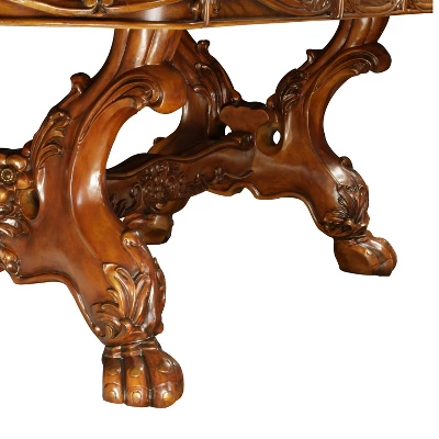 Homes: Inside + Out Bethsaida Elegant 9 Piece Dining Set in Antique Oak isn’t your typical dining set! Take sophistication to the next level with this grand, antique oak table; showcasing impressive, lion claw feet and intricate, floral carvings. If you thought the finishes were grand, wait until you put in the two 15-inch expandable leaves and see the expansive table top. Dine in absolute comfort with the padded seat cushions, upholstered in beautiful, patterned fabric upholstery. The Homes: Inside + Out Bethsaida Elegant 9 Piece Dining Set in Antique Oak will make hosting elegant parties easier than you could have ever known.