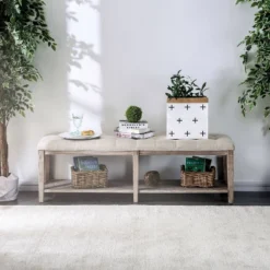 43″ Coulter Padded Seat Bench Walnut/Brown – HOMES: Inside + Out