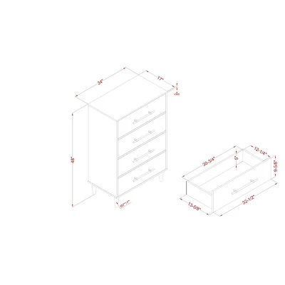 A chest of drawers with farmhouse charm sets the tone for the rest of your bedroom. This 4-drawer tall dresser boasts ample interior storage with spacious drawers perfect for everything from clothing and linens to hobby supplies. The chest features a light oak wood grain finish for a rustic touch, while long, sleek bar drawer pulls add a modern component. Tapered legs complete the look to perfection.