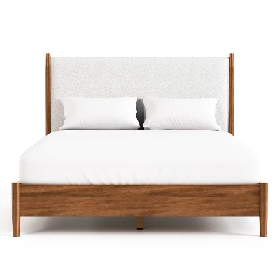 Introducing a mid-century modern 3-piece bedroom set that radiates timeless elegance and functional design. This exquisite collection features a stylish platform bed and 2-matching nightstands, crafted to infuse warmth and sophistication into your bedroom. At the heart of this set lies the stunning platform bed, adorned with a rich walnut finish that beautifully highlights the natural grain of the wood. The headboard serves as a striking focal point, boasting clean lines and a minimalist silhouette that seamlessly complements various interior styles. Crafted from high-quality materials, the sturdy platform frame ensures durability and stability, providing a solid foundation for a restful night’s sleep. The bed’s modern design eliminates the need for a box spring, making it a practical and sleek choice for contemporary living. Accompanying the bed are 2-matching nightstands, each reflecting the same rich walnut finish. These nightstands are designed with clean lines and splayed legs that add a touch of retro flair. Each nightstand features 2-spacious drawers, adorned with sleek brass handles that enhance their vintage appeal. The drawers glide smoothly on metal runners, offering effortless access to your bedside essentials. Whether it’s books, reading glasses, or nighttime skincare products, these drawers provide ample storage to keep your bedroom organized and clutter-free.