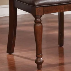 HOMES: Inside + Out Set Of 2 Junipera Traditional Side Chairs Brown Cherry/Espresso : Faux Leather, Wood Frame