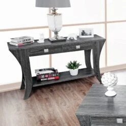 3pc Clander TV Stand And Bookcase Tower Set Vintage Gray Oak – HOMES: Inside + Out